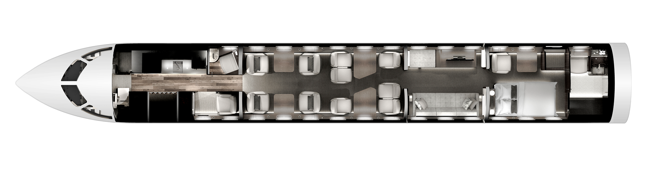 Đội ngũ thiết kế đầu ngành của Bombardier sẽ đồng hành cùng bạn để cá nhân hóa khoang cabin – từ nhiều phương án bố trí mặt bằng khác nhau đến hệ vật liệu, đồ nội thất và hoàn thiện đa dạng, tạo nên một không gian phản chiếu đúng nhu cầu và phong cách sống riêng.