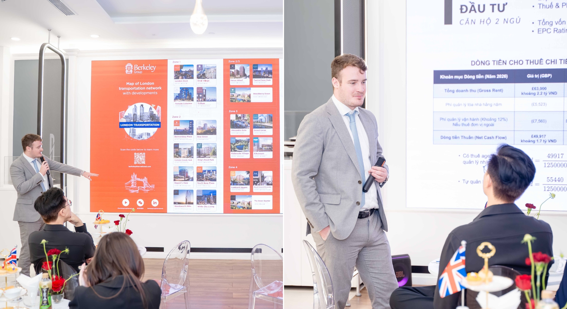 Một trong những điểm nhấn quan trọng của sự kiện là phần trao đổi trực tiếp cùng đại diện Berkeley Group và đội ngũ The Globetrotter, mang đến góc nhìn thực tiễn và cập nhật về thị trường bất động sản London.