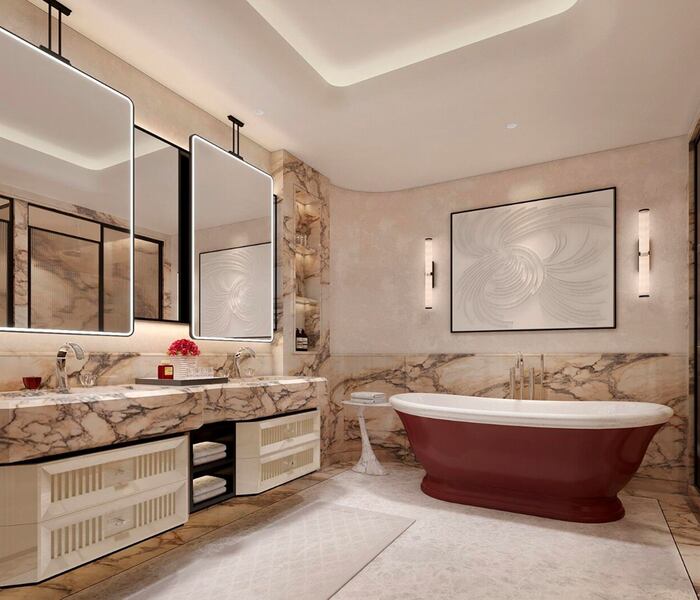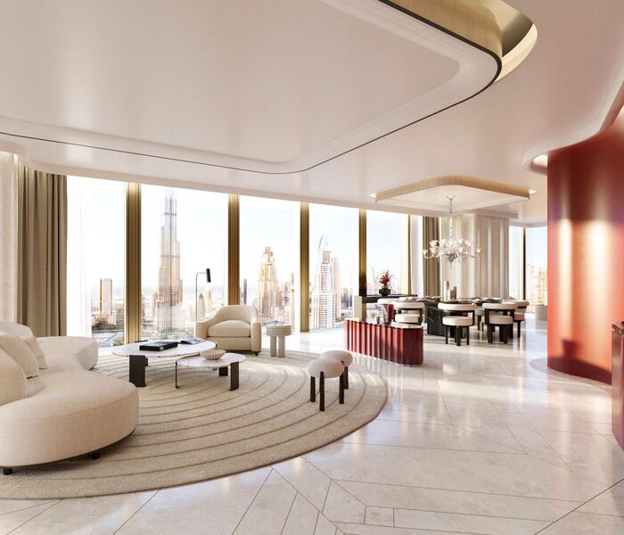 Nhìn ra Burj Khalifa biểu tượng, căn hộ hai phòng ngủ này thuộc Baccarat Hotel and Residences, một dự án rất được mong đợi tại Trung tâm Dubai. Với tổng diện tích 2030,82 feet vuông (khoảng 188,6 m2), căn hộ sang trọng này có nội thất tinh tế, phù hợp với danh tiếng của thương hiệu Baccarat. Khi hoàn thành, đây sẽ là một biểu tượng của sự xa xỉ bậc nhất tại trung tâm thành phố.