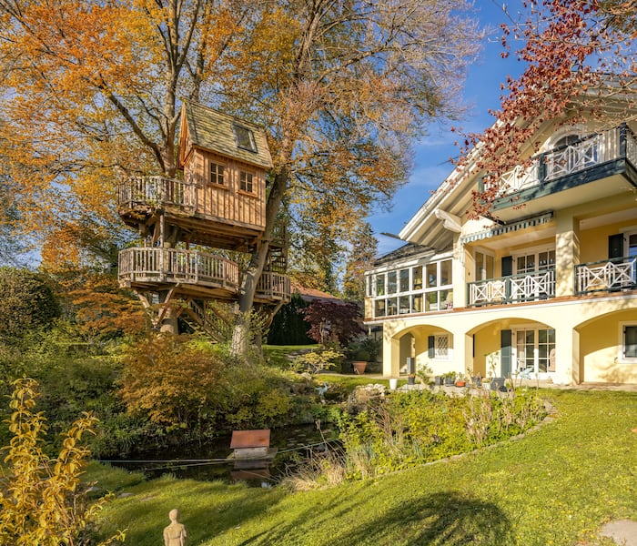 Tầng hầm là khu vực thư giãn cao cấp với phòng xông hơi, bồn sục và quầy rượu kết nối hầm rượu riêng. Ngoài ra còn có một căn hộ nhỏ độc lập rộng khoảng 55 m², gồm hai phòng sáng sủa và sân hiên riêng biệt. Khu vườn thơ mộng là điểm nhấn nổi bật của bất động sản này: khu hồ bơi đầy nắng được cải tạo hoàn toàn vào năm 2022 với hệ thống tràn và dòng nước ngược hiện đại; ngôi nhà trên cây được xây dựng năm 2021/22 trên tán cây sồi lớn, có sân tập yoga – mang lại không gian ẩn dật đầy chất thơ. Hồ thiên nhiên và các góc ngồi lãng mạn hoàn thiện bức tranh một khu vườn mang đậm hơi thở thiên nhiên. Bất động sản đầy quyến rũ này được bổ sung hoàn hảo bởi gara đôi rộng rãi, tạo nên một nơi an cư yên bình và sang trọng bên hồ Starnberg.