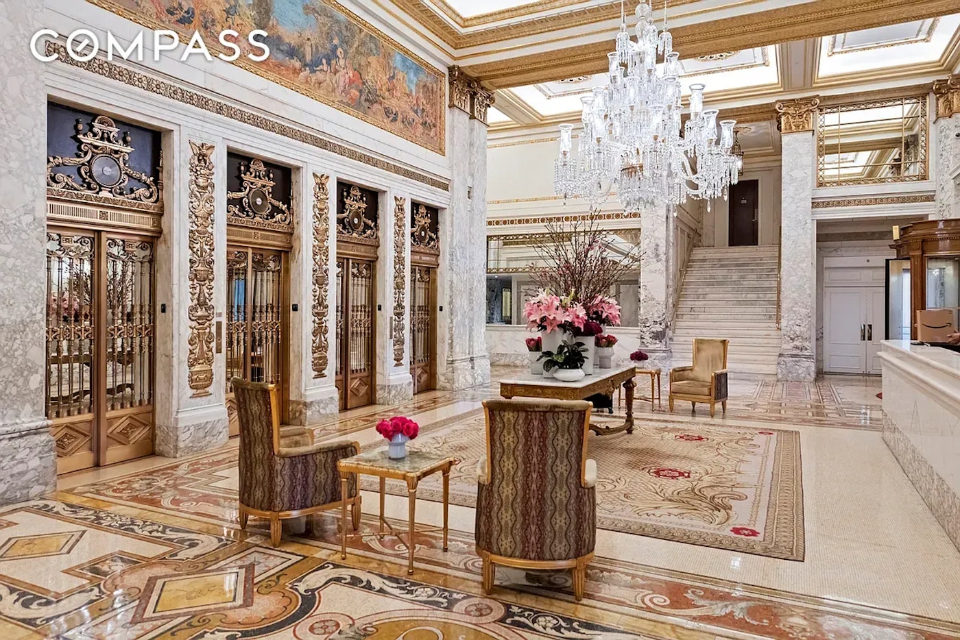Ngay khi bước vào sảnh chính rộng lớn, bạn sẽ được dẫn thẳng đến phòng khách sáng rỡ với những ô cửa sổ lớn nhìn ra Grand Army Plaza lịch sử và Đại lộ Fifth Avenue. Ban công lan can bao quanh gần như toàn bộ mặt ngoài của căn hộ, tạo nên không gian mở hiếm có. Phòng khách nổi bật với sàn gỗ xương cá bản rộng được hoàn thiện tinh xảo và lò sưởi trang trí, là nơi lý tưởng để tiếp khách hoặc thư giãn yên bình và tận hưởng tầm nhìn biểu tượng của New York.