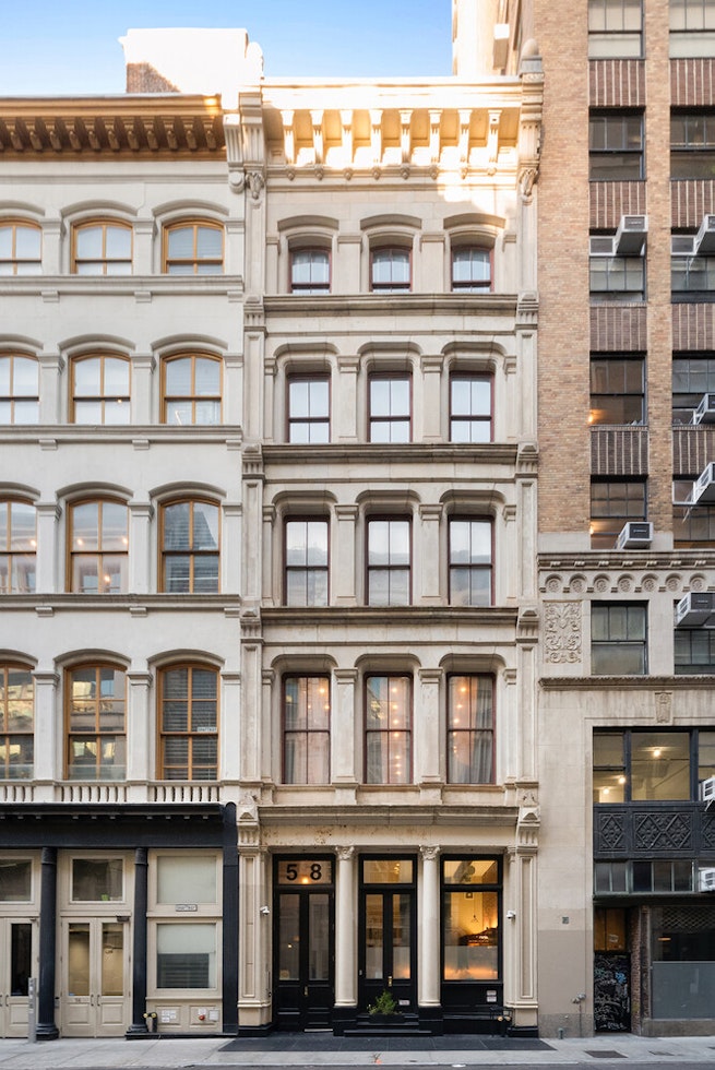 Penthouse loft triplex chiếm trọn một tầng tại 58 Walker Street rộng khoảng 2.115 ft² gồm 2 phòng ngủ, 2 phòng tắm và 1 powder room, nằm trên đỉnh tòa nhà cast-iron được trùng tu từ năm 1869 tại Tribeca East Historic District. Căn hộ được cải tạo chất lượng cao, giữ trọn tinh thần loft nguyên bản với trần cao 16 feet, tường gạch thô, giếng trời, sàn gỗ, kệ sách cao sát trần và lò sưởi, đồng thời hoàn thiện tinh tế để tối ưu công năng và thẩm mỹ. Thang máy riêng có khóa mở trực tiếp vào phòng khách hướng Nam ngập ánh sáng; bếp mở theo phong cách công nghiệp với bếp nướng trong nhà, thiết bị GE Monogram và mặt bàn inox phù hợp cho sinh hoạt thường ngày lẫn tiếp khách. Phòng ngủ chính hướng Bắc có phòng thay đồ và phòng tắm en-suite 5 thiết bị với bồn tắm chân sư tử đặt độc lập; phòng ngủ thứ hai đi kèm phòng tắm đầy đủ linh hoạt cho khách hoặc làm văn phòng tại nhà. Cầu thang thiết kế riêng dẫn lên tầng mezzanine với khu ăn uống mở, wet bar, tủ lạnh rượu, kho rượu lớn và powder room rộng. Điểm nhấn là sân thượng riêng được thiết kế cảnh quan, trải theo hai hướng Bắc–Nam với tầm nhìn trực diện Empire State Building, One World Trade và skyline Manhattan, được trang bị ghế gỗ built-in, kho chứa đồ, hệ chiếu sáng tích hợp và bếp nướng gas kèm tủ lạnh, sẵn sàng cho thư giãn và giải trí. Căn hộ có điều hòa trung tâm, quạt trần, máy giặt/sấy, an ninh truy cập từ xa qua hệ thống Avigilon Alta và thang máy riêng. Tòa nhà là condominium boutique tiền chiến gồm 5 căn trên 5 tầng, gần các điểm đến ẩm thực – lifestyle như La Mercerie, Two Hands, Petrarca, The Roxy Hotel, Barry’s Bootcamp, Whole Foods và bờ sông Hudson, đồng thời hưởng lợi từ hệ thống giao thông thuận tiện với nhiều tuyến tàu điện ngầm tại Canal Street và khu vực lân cận.
