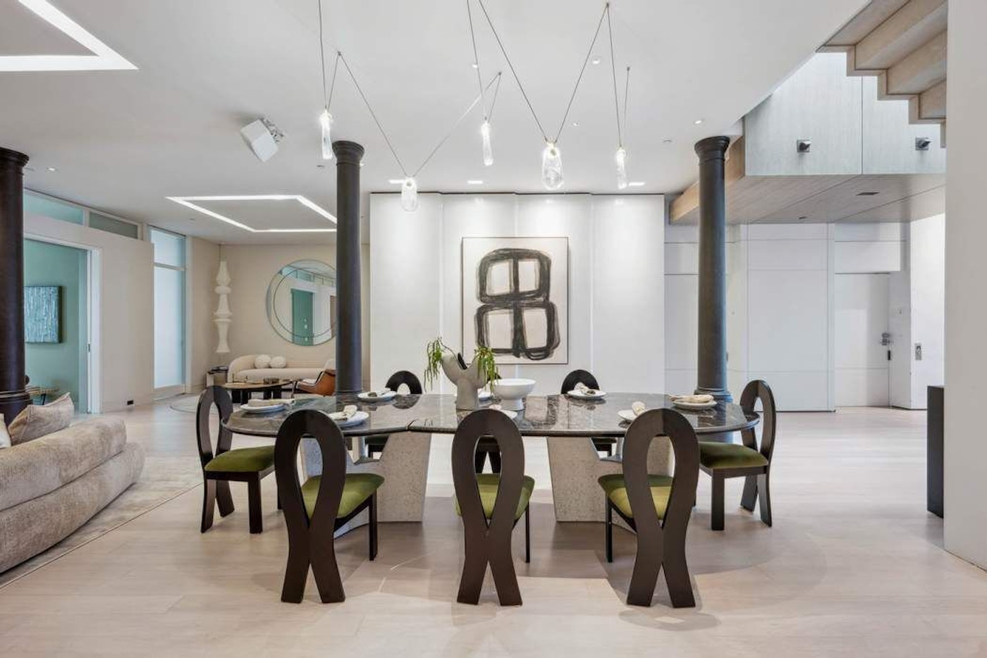 Mặt bằng rộng mở lý tưởng cho cả tiếp khách lẫn sinh hoạt hằng ngày, nổi bật với trần cao, hệ cửa kính cao sát trần và nguồn ánh sáng tự nhiên dồi dào. Khu sinh hoạt và phòng ăn theo концеп mở kết nối liền mạch với gian bếp tối tân, được trang bị thiết bị cao cấp hàng đầu và hệ tủ đặt đóng tinh xảo.