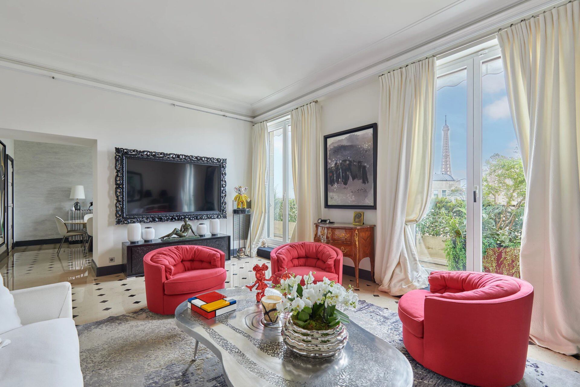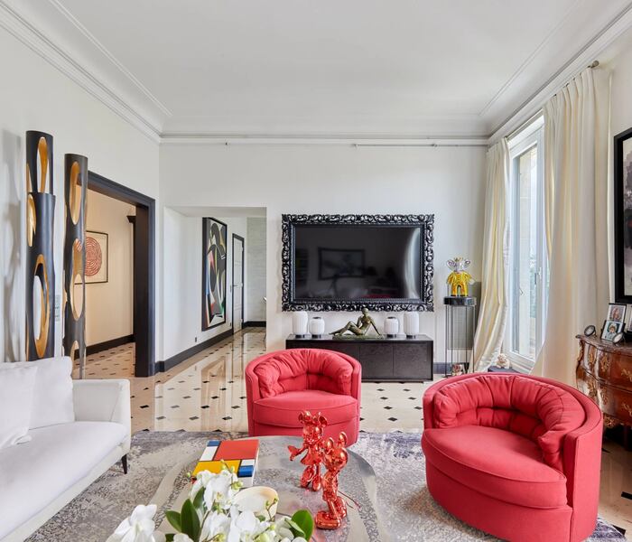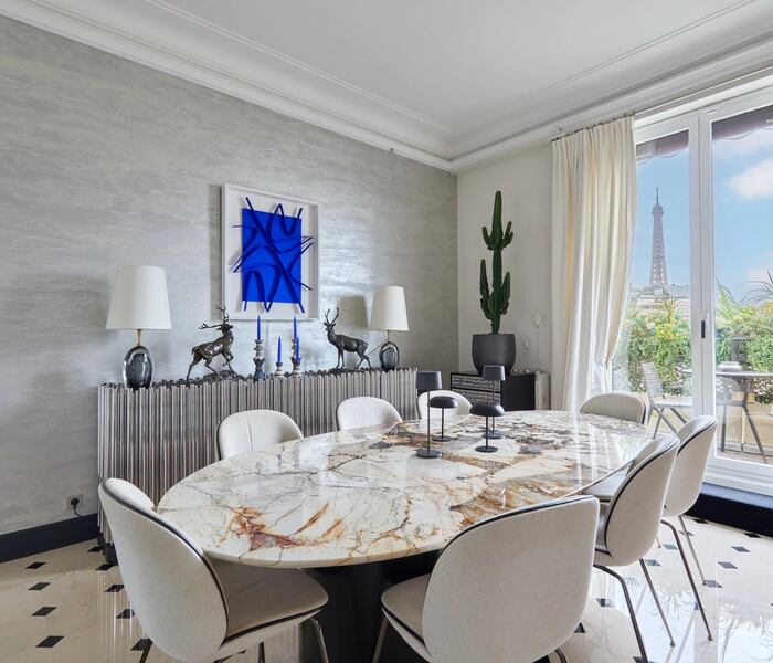 Nằm trong khu vực Trocadéro an ninh, căn hộ có diện tích gần 150m² này tọa lạc tại tầng 7 của một tòa nhà giữa thế kỷ 20 được bảo trì tốt, có người quản lý. Căn hộ có hai mặt thoáng và các sân thượng, mang lại không gian sống lý tưởng.