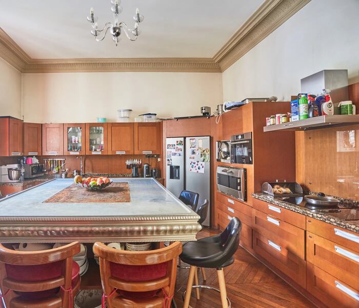 Đại lộ Raymond Poincaré. Căn hộ đặc biệt 348m² tại tầng 3 của tòa nhà Haussmann đẹp với trần cao 3.60m có phào chỉ, sàn gỗ xương cá và lò sưởi. Gồm phòng khách/tiếp khách gấp ba, bếp rộng, phòng ăn và tối đa 5 phòng ngủ.