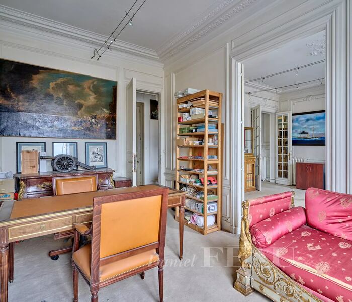 Căn hộ 110 m² hai mặt thoáng này nằm ở tầng 3 của một tòa nhà đẹp thế kỷ 19 tại vị trí độc nhất đối diện Dinh Elysée. Căn hộ gồm phòng khách/tiếp khách đôi mở ra ban công rộng hướng Tây Nam với tầm nhìn đặc biệt ra Dinh Elysée và Tháp Eiffel, phòng ăn, bếp có cửa sổ cong nhìn ra sân trong, một phòng ngủ cũng nhìn ra sân trong, phòng tắm, phòng làm việc hoặc phòng thay đồ, và nhà vệ sinh. Đi kèm một tầng hầm.