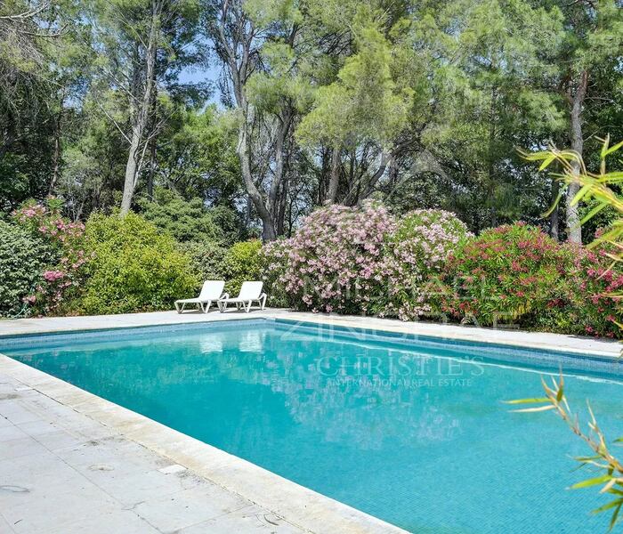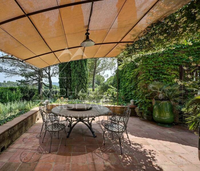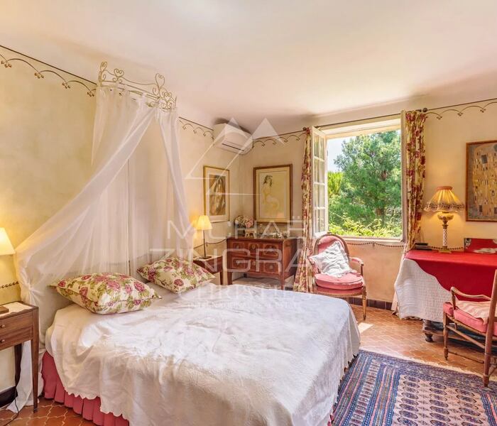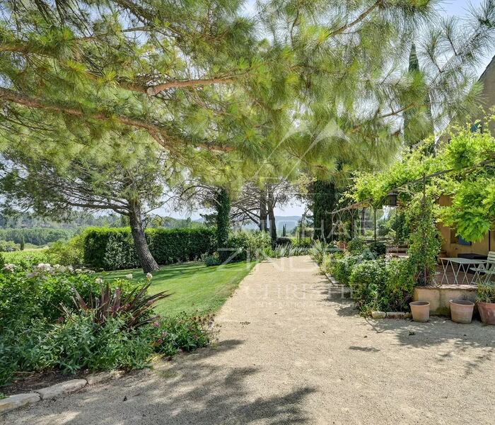 Kèm theo là nhà quản gia độc lập 70 m² — lý tưởng để tiếp khách hoặc làm nơi ở cho nhân viên — cùng nhiều công trình phụ. Từ các sân thượng, tầm nhìn trải rộng ra Sainte-Victoire hùng vĩ, dãy núi Luberon, vùng đồng quê Provençal và những vườn nho, tạo nên panorama ngoạn mục. Bất động sản gồm 5 phòng ngủ, 4 phòng tắm, các không gian sinh hoạt đẹp và một phòng làm việc rộng có thể chuyển thành suite. Khu vườn như một bức tranh sống trải trên 4,6 ha, bao gồm vườn nho (1,8 ha), đồi ô liu (350 cây), rừng và khuôn viên được quy hoạch. Hồ bơi lớn 12 x 6 m cùng nhà nghỉ bên hồ mời gọi thư giãn. Một nơi hiếm có, đầy hồn, để trải nghiệm Provence chân thật và trọn vẹn.