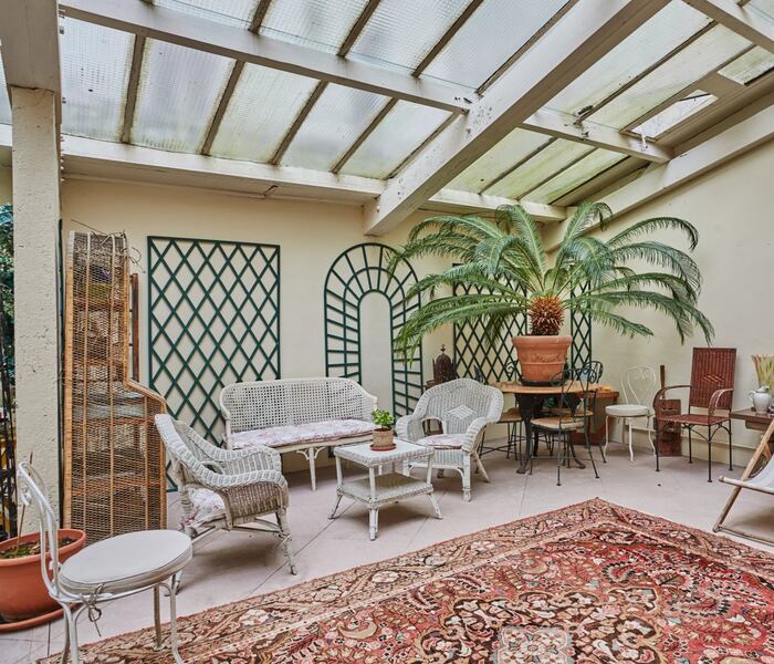 Biệt thự có diện tích khoảng 288 m², gồm 7 phòng ngủ, nguyên bản là một khách sạn nhỏ được chuyển đổi công năng tinh tế. Không gian bếp mở kết nối trực tiếp phòng kính 66 m² tràn ngập ánh sáng, dẫn ra khu vườn riêng 55 m² – khoảng xanh hiếm hoi, mang lại nhịp sống tĩnh tại giữa nội đô Paris.