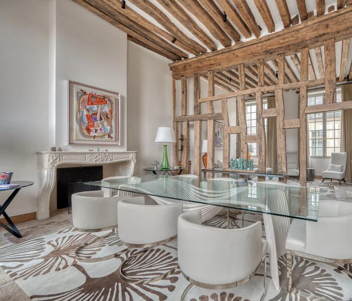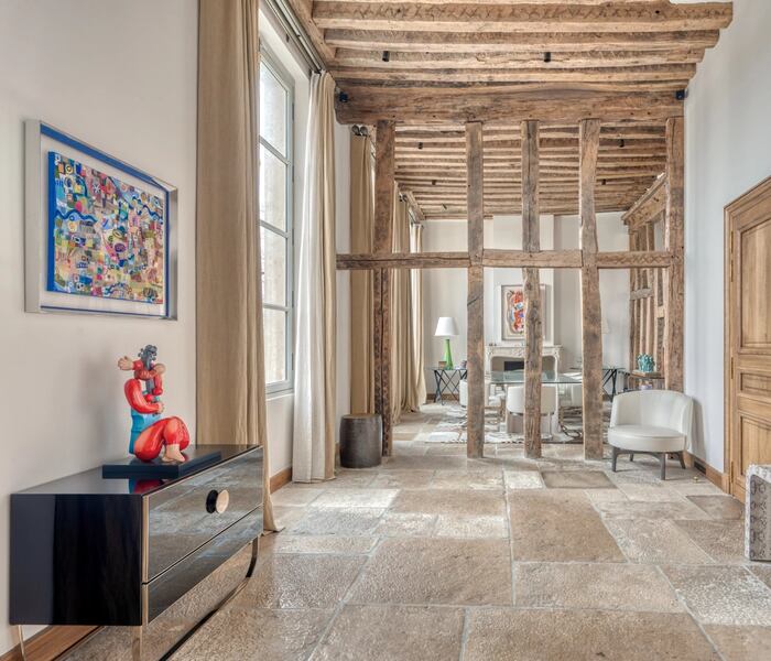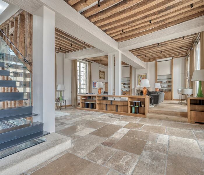 Căn hộ triplex độc bản, nằm tại tầng 2, 3 và 4 của một dinh thự tư nhân thế kỷ 17 đã được trùng tu hoàn chỉnh. Tầm nhìn trực diện Nhà thờ Đức Bà qua bảy khung cửa sổ lớn – một đặc quyền sống gần như khó có thể tìm thấy giữa trung tâm kinh đô ánh sáng.