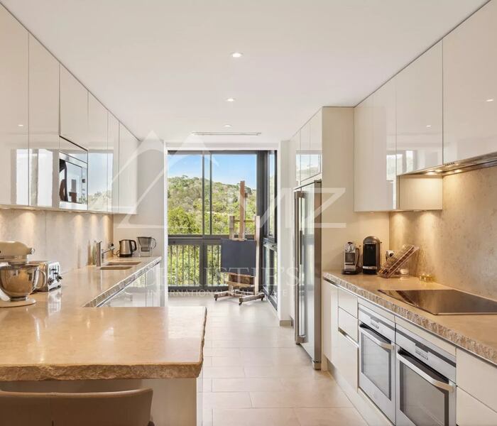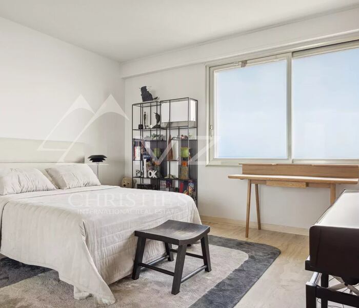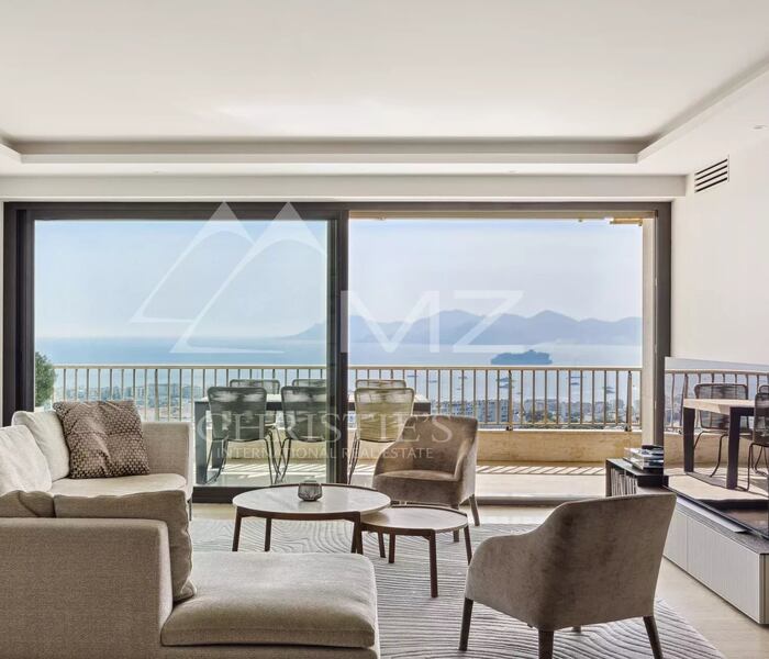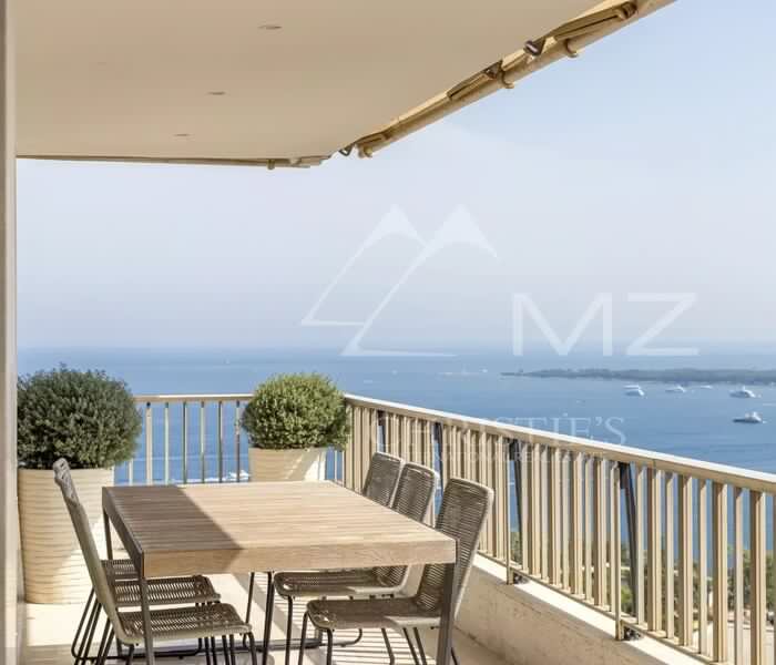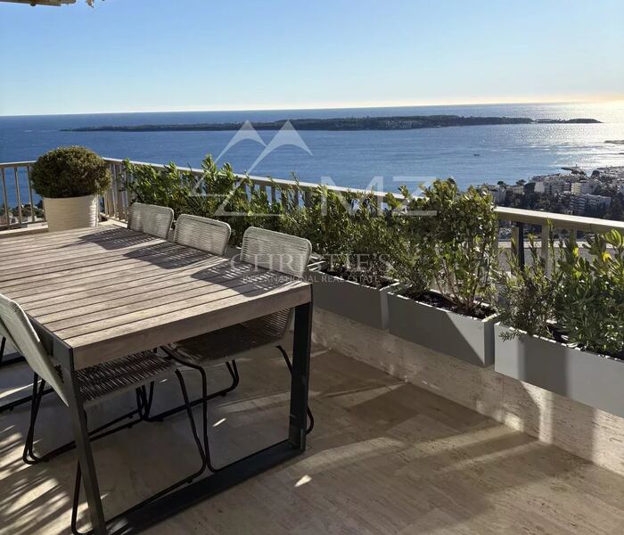 Căn hộ được bảo trì trong tình trạng hoàn hảo, gồm phòng khách rộng rãi, tràn ngập ánh sáng, mở ra sân hiên góc 33 m² với tầm nhìn toàn cảnh ngoạn mục hướng ra Địa Trung Hải và quần đảo Lérins. Bếp riêng biệt, thiết kế hiện đại, được trang bị đầy đủ, sẽ làm hài lòng những người yêu ẩm thực.