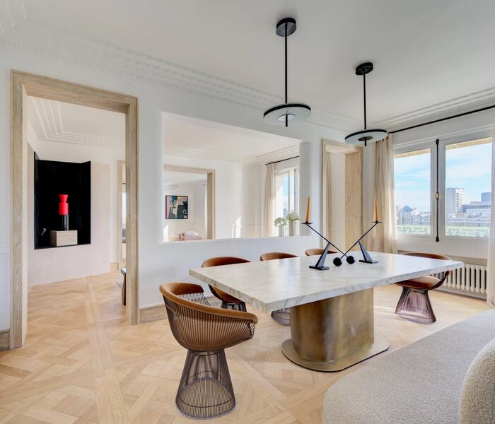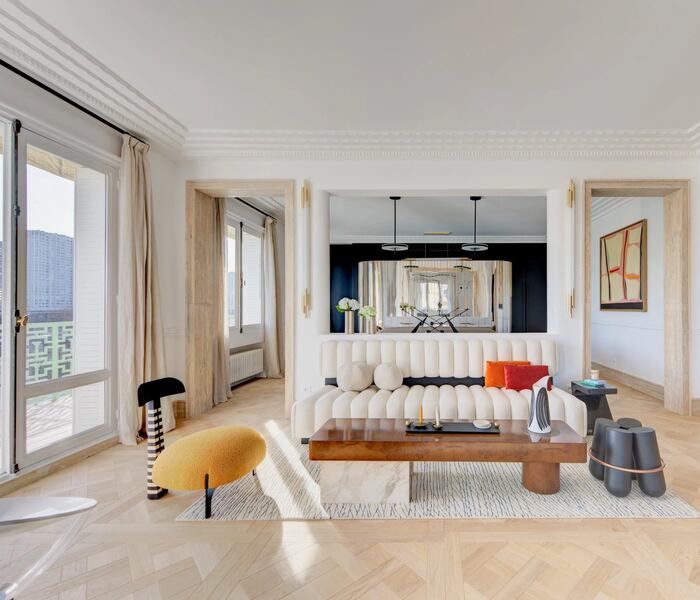 Tọa lạc trên đại lộ Avenue Président Kennedy danh giá tại Paris, căn hộ đặc biệt rộng gần 184 m² này nằm trên tầng 6 của một tòa nhà ấn tượng xây dựng thập niên 1930, có thang máy. Toàn bộ căn hộ đã được cải tạo hoàn chỉnh theo tiêu chuẩn cao.