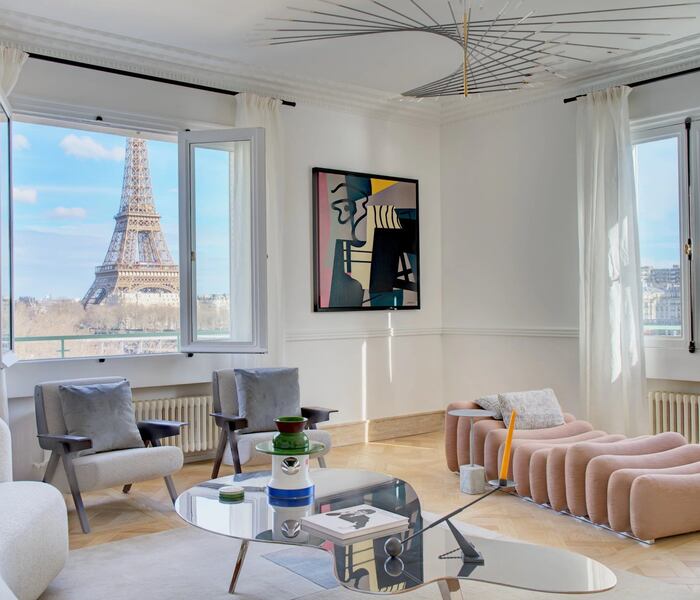 Sở hữu tầm nhìn khoáng đạt ngoạn mục hướng về Eiffel Tower và dòng Seine, căn hộ mang đến không gian sống tinh tế và tràn ngập ánh sáng. Bố cục gồm sảnh vào thanh lịch, phòng khách/phòng tiếp đón rộng rãi kết hợp phòng ăn chan hòa nắng, mở ra các sân hiên thoáng đãng. Nhà bếp hiện đại được trang bị đầy đủ thiết bị cao cấp, tích hợp khu vực ăn uống tiện nghi.