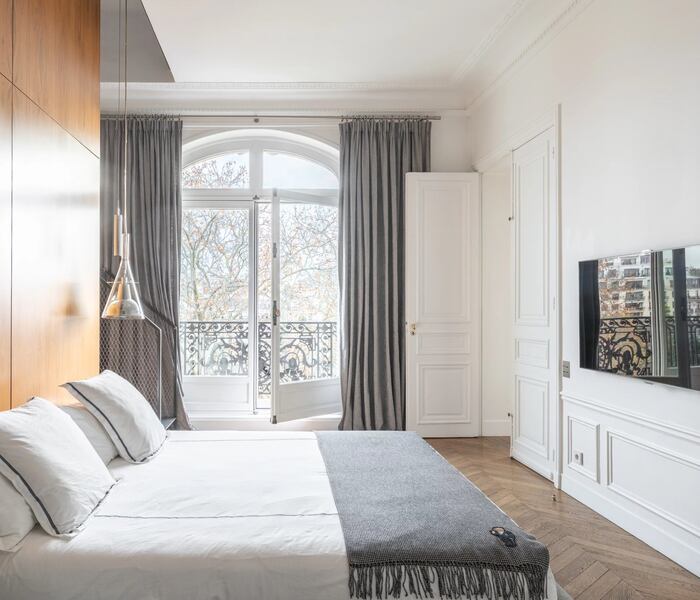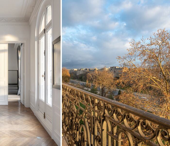 Tọa lạc tại khu Avenue Foch danh giá, căn hộ góc đặc biệt hiếm có này có diện tích 296 m², trải dài trên các tầng 3, 4 và 5 của một tòa nhà sang trọng đầu thế kỷ 20. Toàn bộ không gian đã được một nhà thiết kế nội thất danh tiếng quốc tế trực tiếp hoàn thiện, mang đến phong cách sống đẳng cấp và tinh tế.