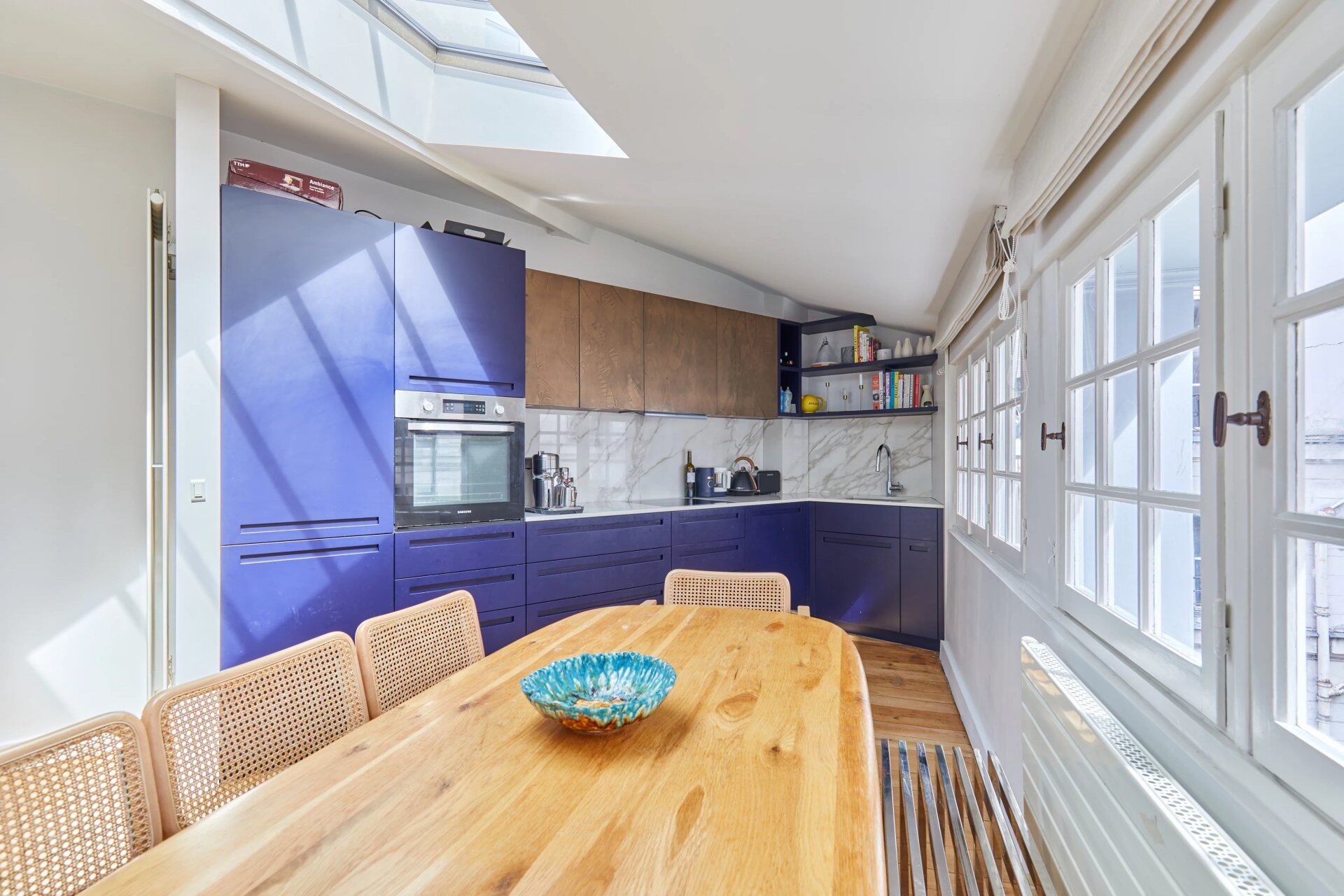 Trên diện tích 157 m² trải đều 3 tầng, căn nhà mở ra một không gian sống riêng tư hiếm gặp với sân trong riêng biệt. 2 tầng dưới dành cho các phòng nghỉ, trong khi tầng cao nhất được trọn vẹn hoá cho phòng khách – bếp – phòng ăn, đón ánh sáng chan hòa và tạo nên một không gian sinh hoạt chung sang trọng, giàu nhịp thở Paris.