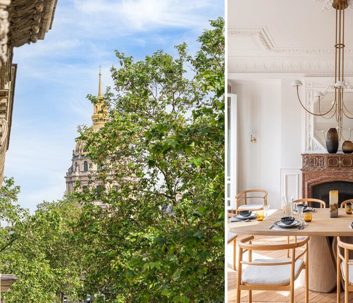 Tọa lạc tại tầng một của tòa nhà cổ điển sang trọng, căn hộ hai mặt thoáng đãng với diện tích 155,50 m² mang đến một không gian sống an tĩnh, tràn ngập ánh sáng tự nhiên cùng tầm nhìn ngoạn mục hướng về mái vòm huyền thoại của Invalides – biểu tượng lịch sử và kiến trúc giữa lòng Paris.