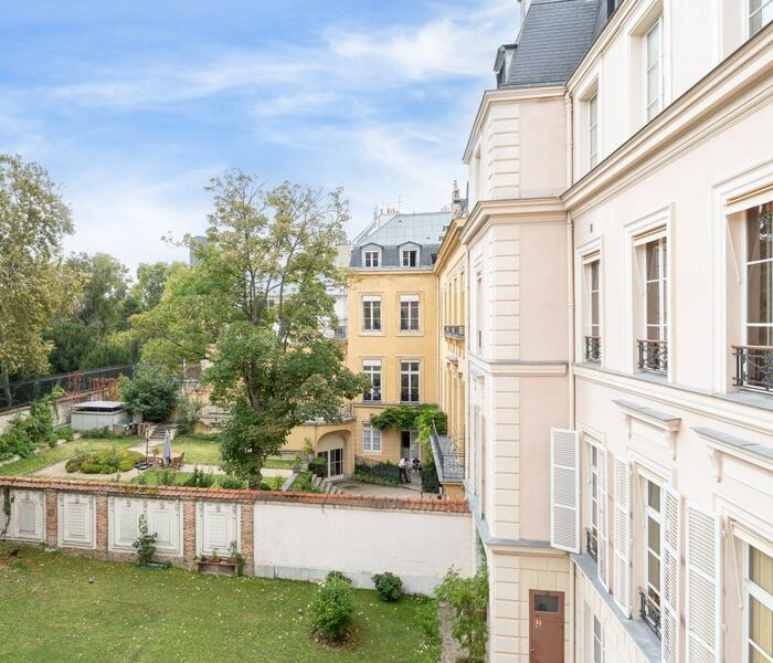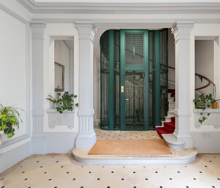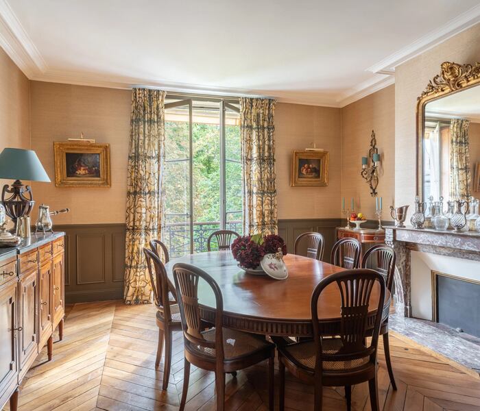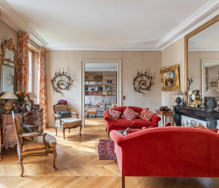 Căn hộ tráng lệ này tọa lạc tại tầng 2 của một tòa nhà tiêu biểu đầu thế kỷ 19, có thang máy, với diện tích sử dụng 219 m² theo tiêu chuẩn Carrez. Kết hợp hài hòa giữa vẻ đẹp kiến trúc cổ điển và tiện nghi đương đại, căn hộ gồm sảnh vào rộng rãi, hai phòng khách/phòng tiếp khách sang trọng cùng phòng ăn ngập tràn ánh sáng tự nhiên, ba phòng ngủ lớn trong đó có phòng ngủ chính (master suite) với phòng tắm vòi sen và phòng thay đồ riêng, thêm một phòng tắm kết hợp bồn/vòi sen, một phòng thay đồ khác, phòng giặt và ba nhà vệ sinh.