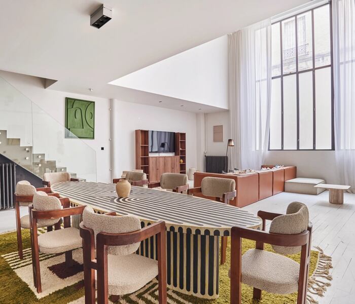 Căn hộ duplex này nằm tại tầng 1 và tầng 2 của một tòa nhà đá freestone trang nhã có niên đại đầu thế kỷ 20, có người trông coi , với diện tích sinh hoạt 156 m² theo tiêu chuẩn Carrez. Căn nhà được cải tạo và bảo dưỡng hoàn hảo. Từ căn hộ, cư dân có thể nhìn hướng nhìn ra sân trong yên tĩnh, căn hộ mang đến không gian sống vừa sang trọng vừa riêng tư.