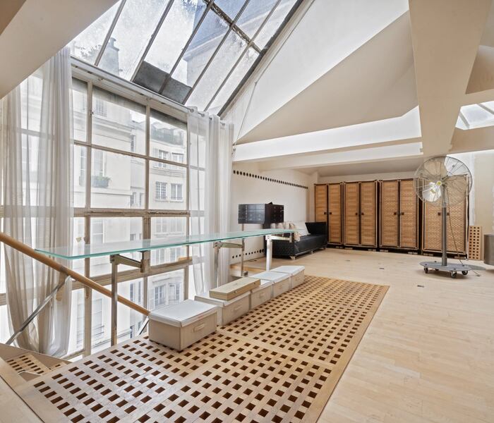 Điểm nhấn nằm ở hai tầng trên cùng, nơi không gian sinh hoạt và tiếp khách mở rộng với trần cao ấn tượng, hệ cửa kính lớn ngập tràn ánh sáng tự nhiên và tầm nhìn đặc trưng của khu vực bờ trái sông Seine. Các tầng dưới cho phép linh hoạt thiết kế thêm nhiều phòng ngủ, phù hợp để chuyển đổi thành một ngôi nhà thực thụ mang tính sưu tầm – có thể vừa để ở vừa để làm studio sáng tạo lưu giữ giá trị nghệ thuật.