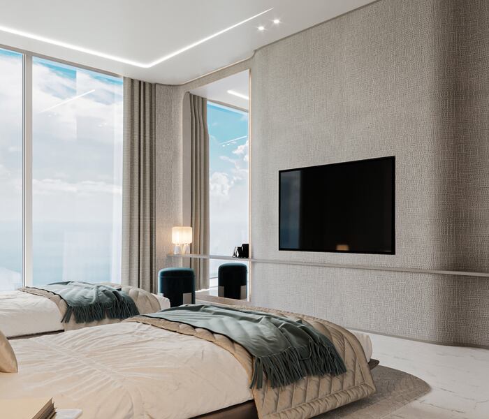 Dự kiến hoàn thành vào quý 2 năm 2026, căn hộ hai phòng ngủ này thuộc dự án Oceano rất được mong đợi trên đảo Al Marjan, Ras Al Khaimah. Căn hộ rộng 1703,5 feet vuông (khoảng 158,2 m2) có tầm nhìn biển tuyệt đẹp và lối ra bãi biển trực tiếp.
