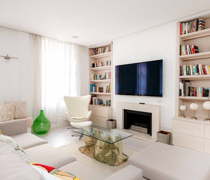 - Tầng 1: Double reception room cực kỳ ấn tượng (trần cao, lò sưởi, cùng ánh sáng tự nhiên), cùng tầng là phòng ngủ master với khu vực sân vườn riêng