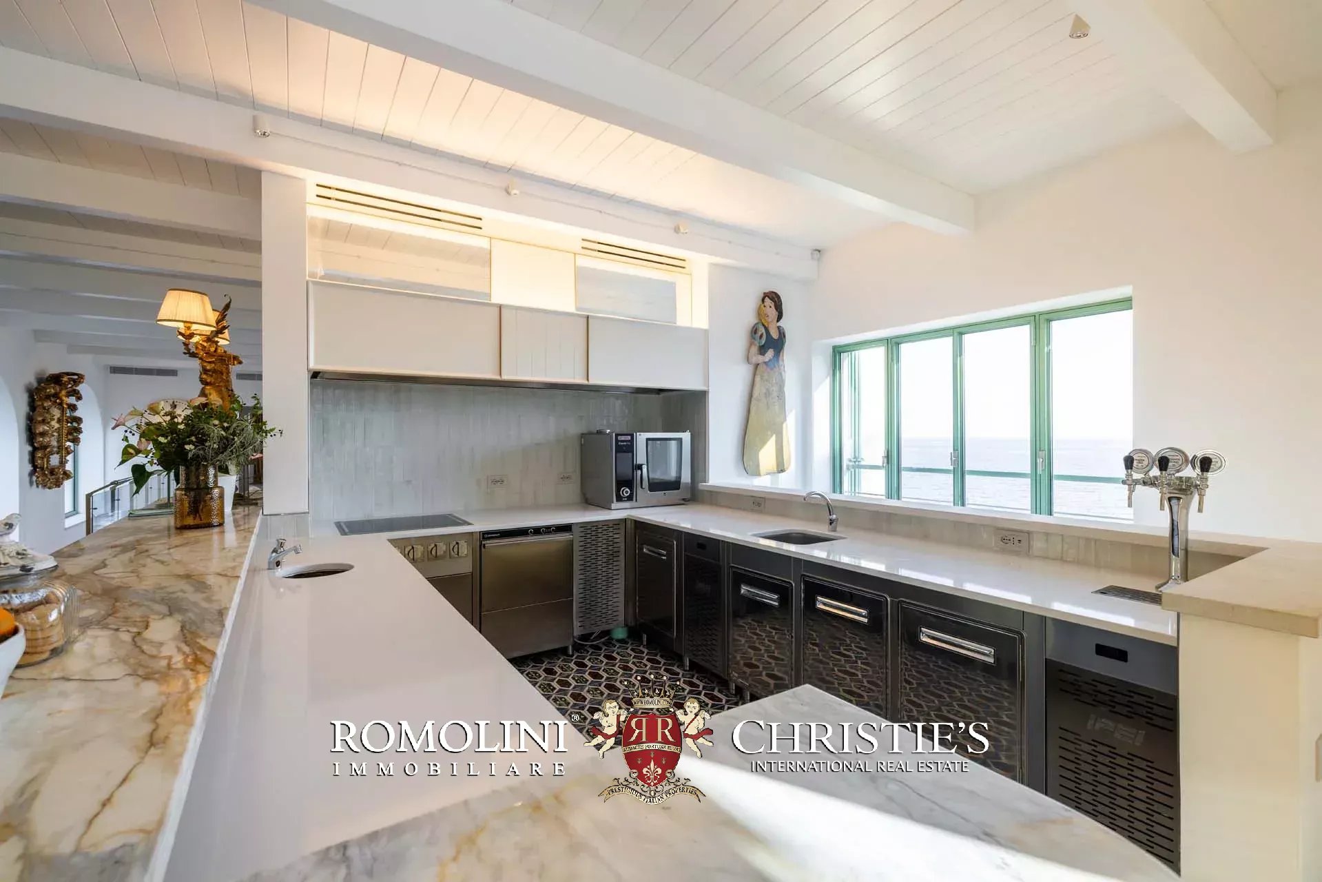 Ngôi nhà trải dài trên hai tầng, nổi bật với sàn gốm đa sắc và hệ cửa kính lớn mở ra toàn cảnh đại dương. Các sân hiên kết nối mềm mại giữa không gian trong – ngoài, dẫn dần xuống mặt nước, tạo nên dòng chảy tự nhiên của trải nghiệm sống. Kề bên là khu nhà khách cùng hệ tiện ích hoàn chỉnh: hồ bơi panorama, khu tắm nắng, quầy bar và khu vực dành cho nhân viên – tất cả được bao quanh bởi thảm thực vật Địa Trung Hải xanh mát, mang đến sự tiện nghi trọn vẹn trong bối cảnh biệt lập.