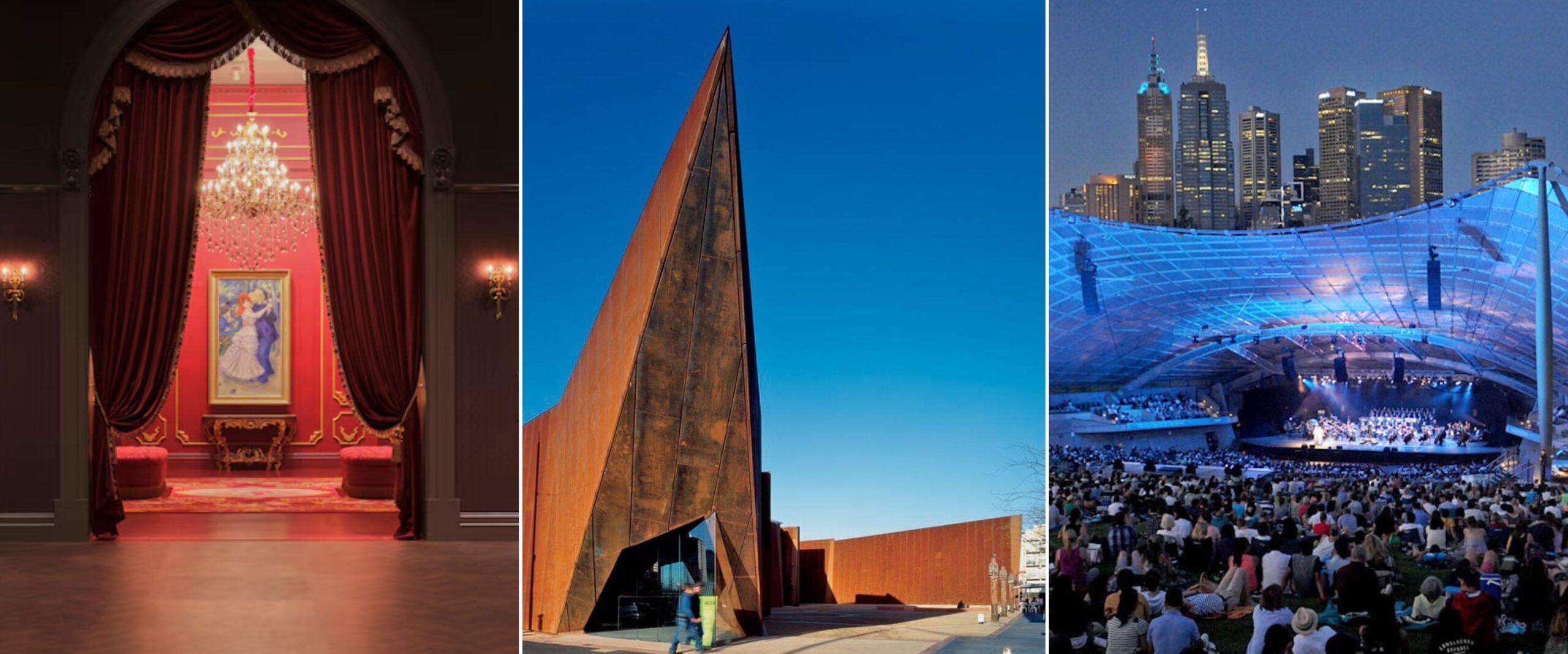 Song song với mảng xanh, nền văn hóa nghệ thuật bao quanh Domain Precinct dần nở rộ. National Gallery of Victoria (NGV) được thành lập từ năm 1861 trở thành bảo tàng nghệ thuật công cộng lâu đời nhất của Úc và là biểu tượng tinh thần nghệ thuật pha trộn giữa tinh thần bản địa và quốc tế của Melbourne. Tiến về thời hiện đại, một khu vực mang tên Melbourne Arts Precinct hình thành và phát triển như linh hồn nghệ thuật của thành phố, cách Park Modern chỉ 10 phút đi bộ. Đây là nơi quy tụ NGV biểu tượng, Trung tâm biểu diễn nghệ thuật Arts Centre Melbourne, Nhà hát âm nhạc cổ điển & hòa nhạc Hamer Hall hay Sidney Myer Music Bowl mang âm nhạc ra ngoài trời, biến những buổi hòa nhạc dưới vòm trời đêm trở thành ký ức chung của nhiều thế hệ cư dân.