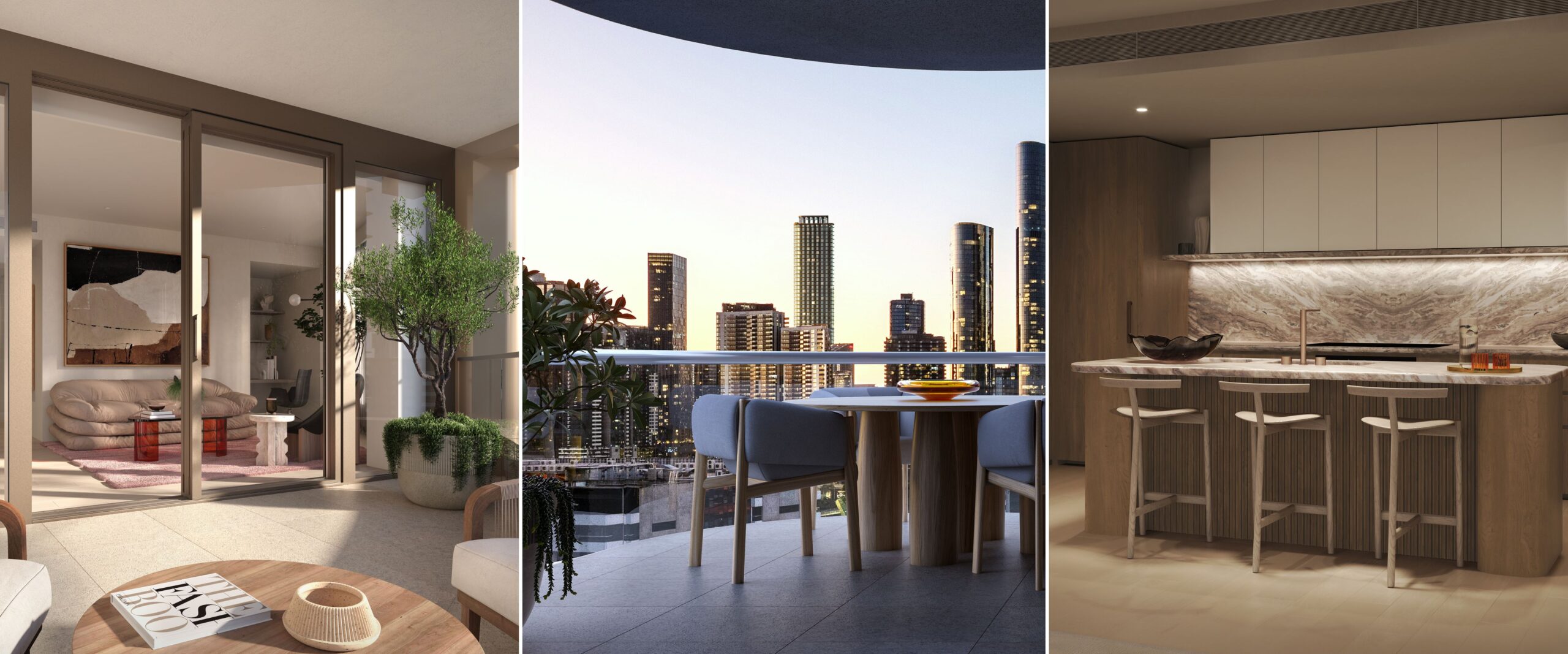 The Collections là Bộ sưu tập các căn penthouse mang trải nghiệm sự trọn vẹn tuyệt đối trong riêng tư – sống giữa bầu trời và cảnh quan xinh đẹp của Domain Precinct và xa hơn nữa là đường chân trời Melbourne trong tầm mắt, không bị che chắn bởi bất kỳ công trình nào khác.