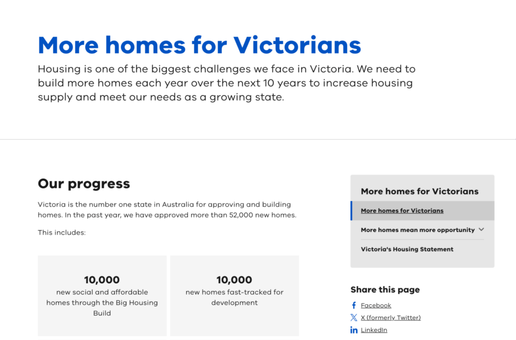 Ảnh: Trong một bài viết công khai tại Trang chủ Chính Phủ bang Victorian, với tựa đề “More homes for Victorian” (Có thêm nhà cho người dân Victorian) khẳng định trong chu kỳ 2024-2025 đã phê duyệt để xây thêm ít nhất 52,000 chỗ ở nói chung.