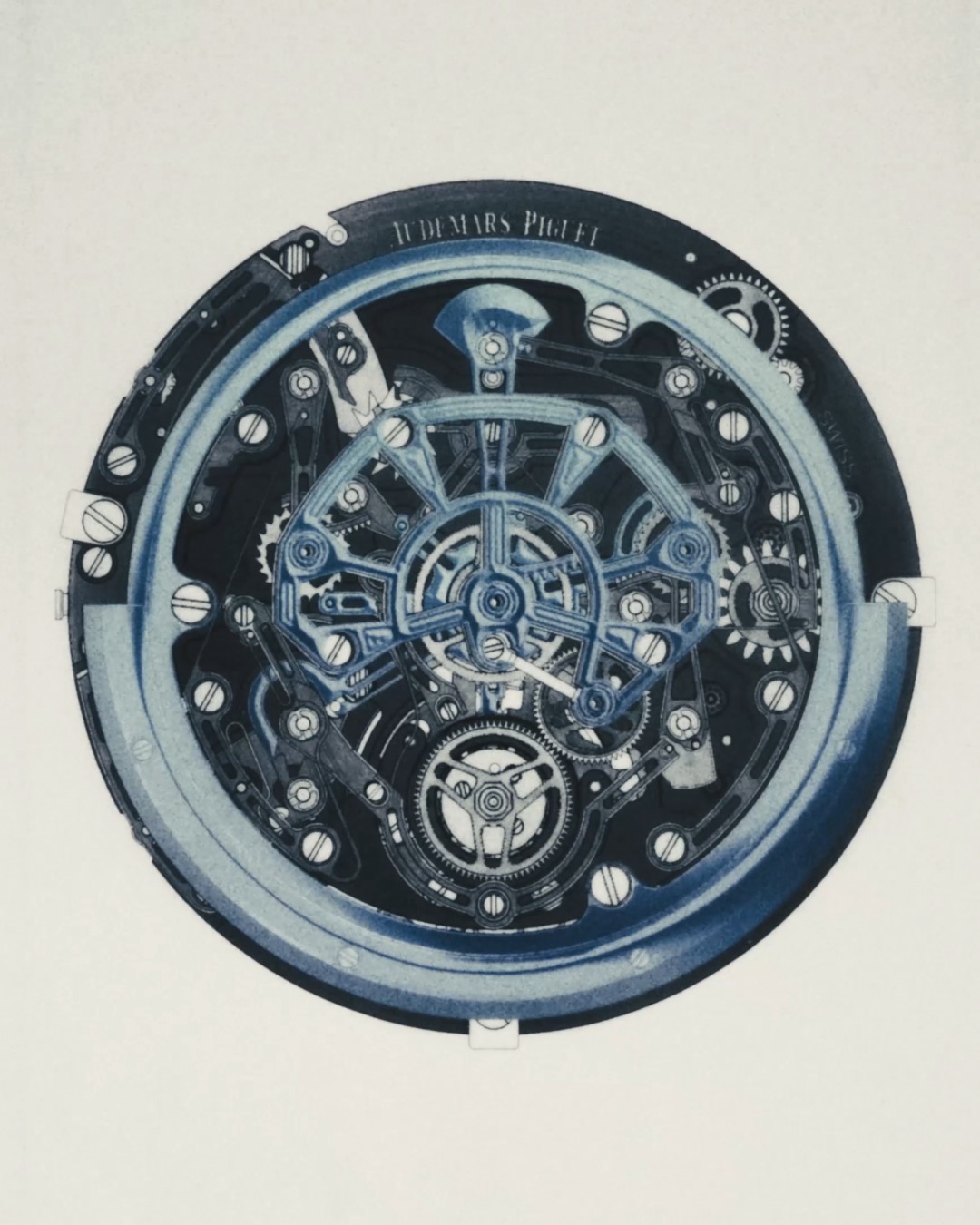 Không chỉ dừng lại ở kỳ tích về chronograph, Royal Oak “Jumbo” Extra-Thin Selfwinding Flying Tourbillon Chronograph RD#5 còn hội tụ một cơ chế phức tạp khác: flying tourbillon biên độ cao, vốn lần đầu tiên xuất hiện trong mẫu RD#3. Cấu trúc tourbillon này đã được tái thiết kế vào năm 2022 để trở nên mỏng hơn mà vẫn giữ nguyên tỷ lệ cân đối, sử dụng hệ thống truyền động ngoại vi giúp tăng biên độ dao động của bánh lắc và tối ưu hóa việc phân bổ năng lượng. Khi kết hợp cùng bộ máy chronograph hoàn toàn mới, Audemars Piguet đã tạo nên cỗ máy đầu tiên trong lịch sử “Jumbo” sở hữu hai cơ chế phức tạp trong cùng một thiết kế siêu mỏng.