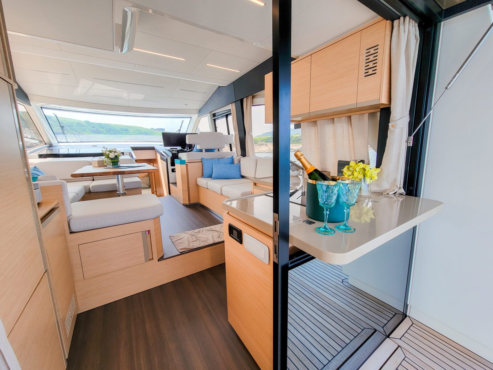 Với chiều dài 50 feet, Greenline 45 Fly Hybrid chào đón tối đa 15 khách trong không gian được thiết kế tối ưu, được chăm sóc tận tình bởi đội ngũ thủy thủ 2 người. Du thuyền kết hợp thiết kế hiện đại, tiện nghi cao cấp và động cơ hybrid, mang đến hành trình yên tĩnh, êm ái và tiết kiệm nhiên liệu – lý tưởng cho những chuyến cruise mùa thu, đông tại Hong Kong.